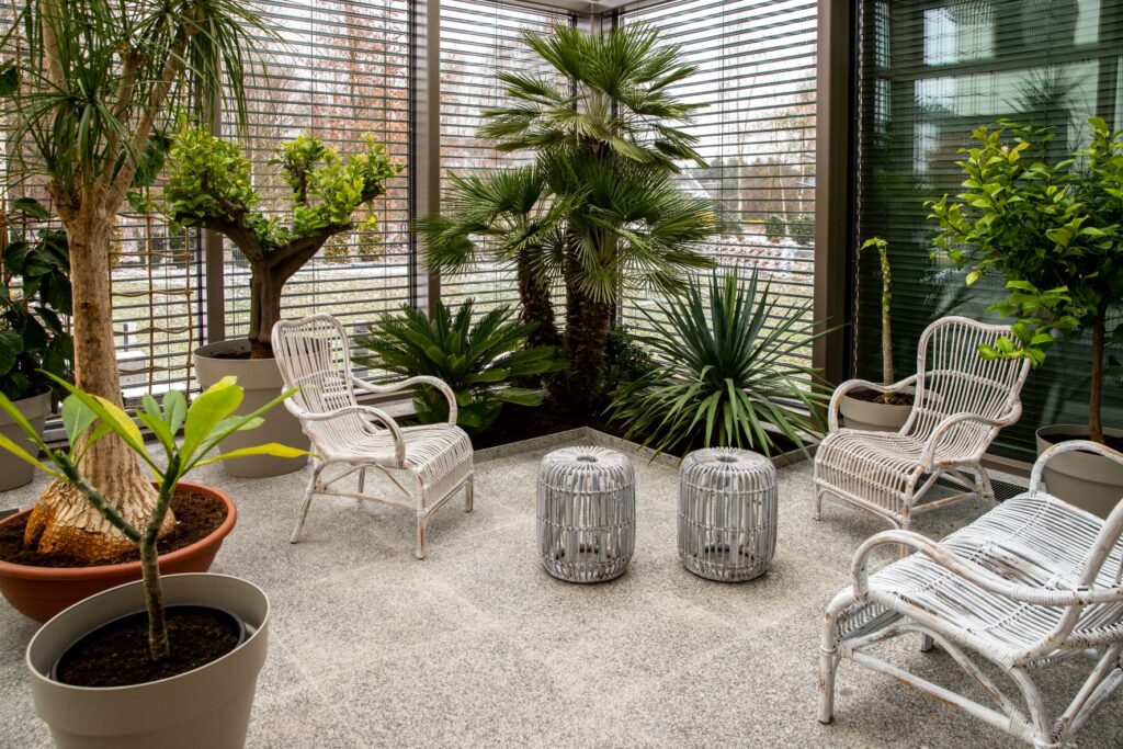Ogród zimowy jest wyjątkowym miejscem w domu. Wykonaliśmy podłogi z naturalnego granitu, który w połączeniu z zielenią daje efekt naturalności.